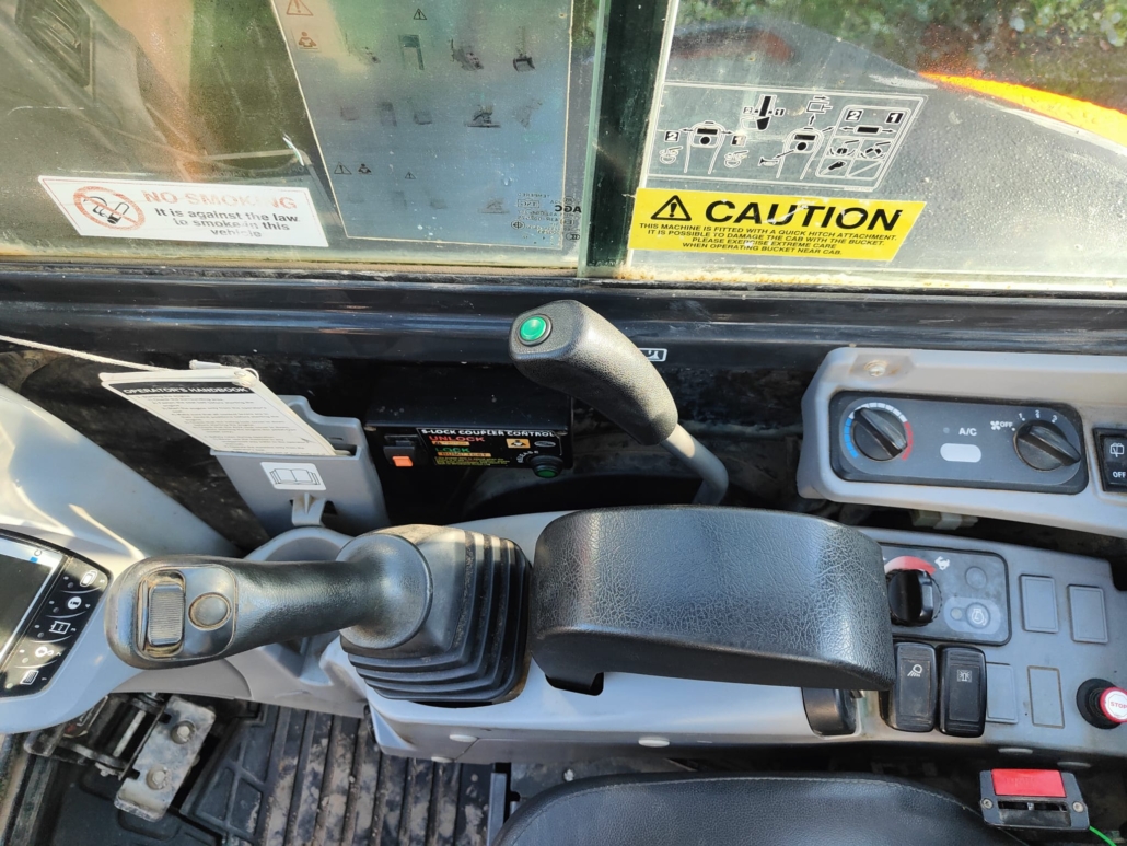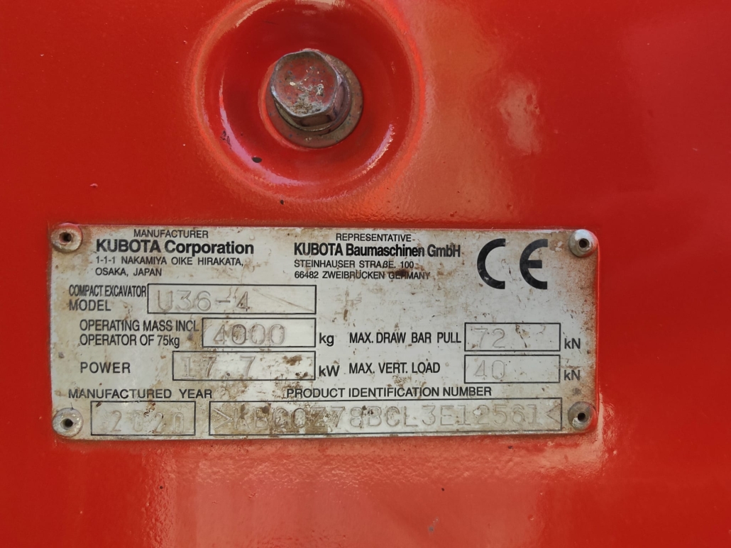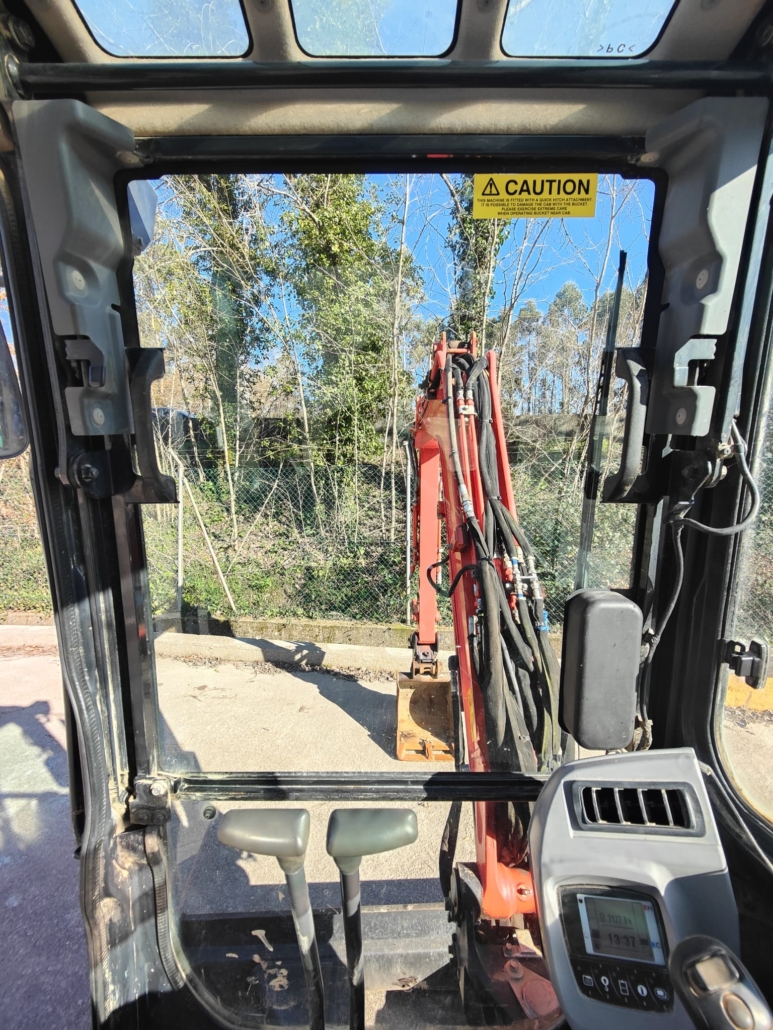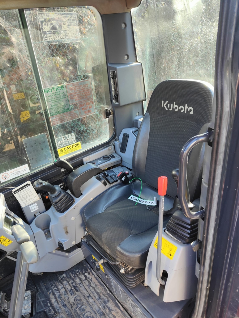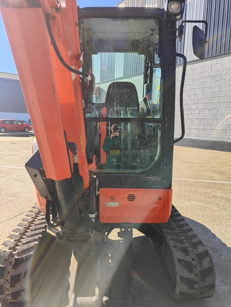 Mini excavadora Kubota U56-5. 3,6 TN de peso. Cabina, A/A, rodaje de goma, balancín largo, enganche rápido, 3 cazos. Revisada de mecánica y mantenimiento