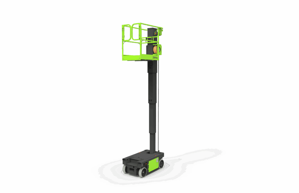 Elevador unipersonal eléctrico Zoomlion ZMP04. 5,82 m. de altura máxima de trabajo. Plataforma extensible hasta 0,50 m. Carga máxima 230 Kg. Ruedas no marcantes. Desplazamiento y elevación eléctricos. Ideal para trabajos en suelos delicados y que necesiten un alcance adicional. Se puede transportar en una pequeña furgoneta